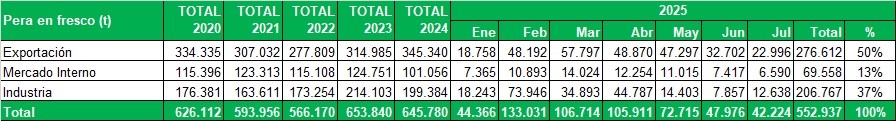 Peras certificadas durante Julio de 2025