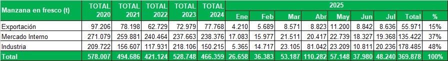 Manzanas certificadas durante Julio de 2025