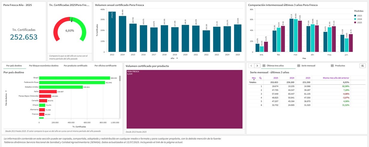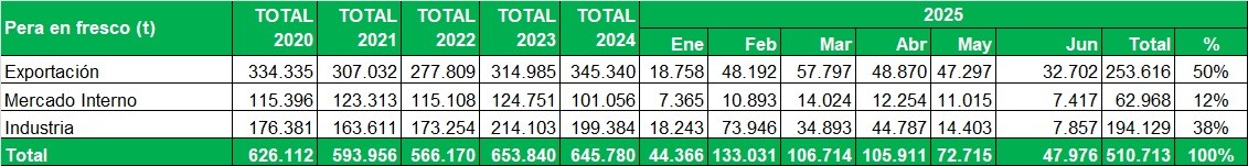 Peras certificadas durante Junio de 2025