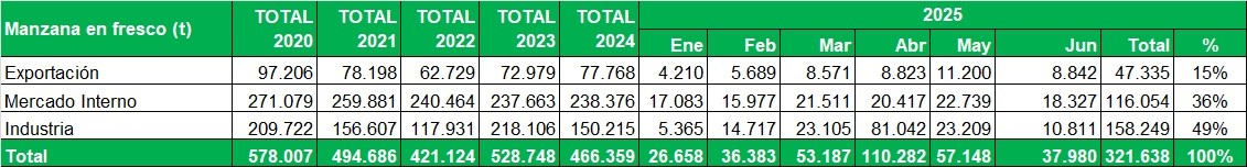 Manzanas certificadas durante Junio de 2025
