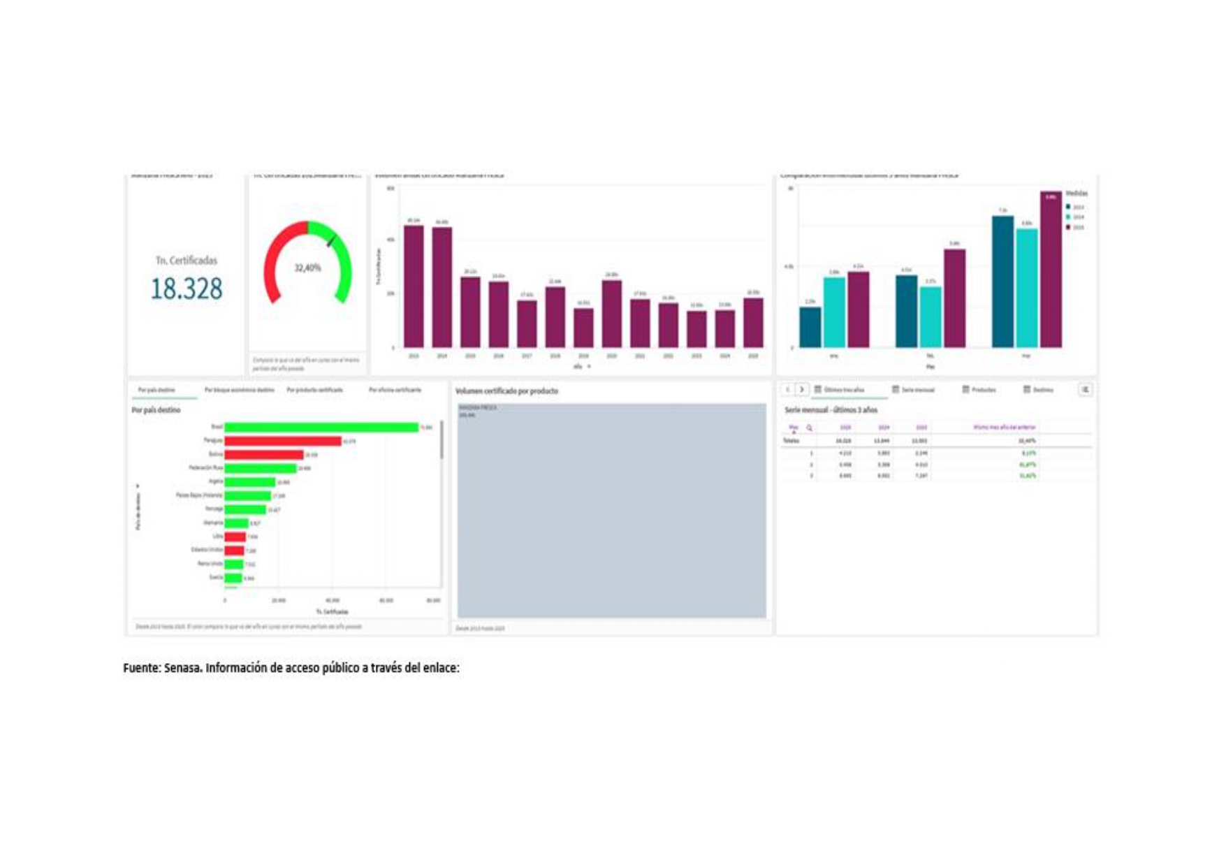Exportaciones, mercado interno e industrialización, de Río Negro y Neuquén, en toneladas por mes