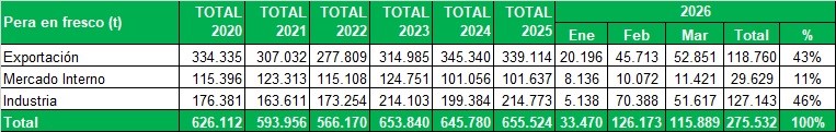 Peras certificadas durante marzo de 2026