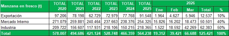 Manzanas certificadas durante marzo de 2026