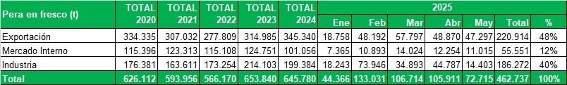 Peras certificadas durante mayo de 2025