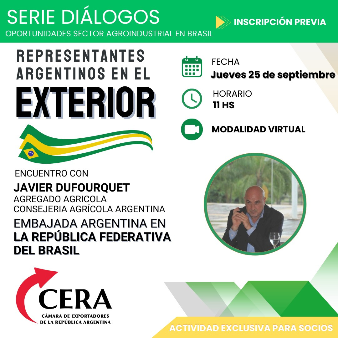 Invitamos a nuestros socios a participar de una charla exclusiva con el Agregado Agrícola Javier Dufourquet, a cargo de la Consejeria Agrícola Argentina en el Brasil.